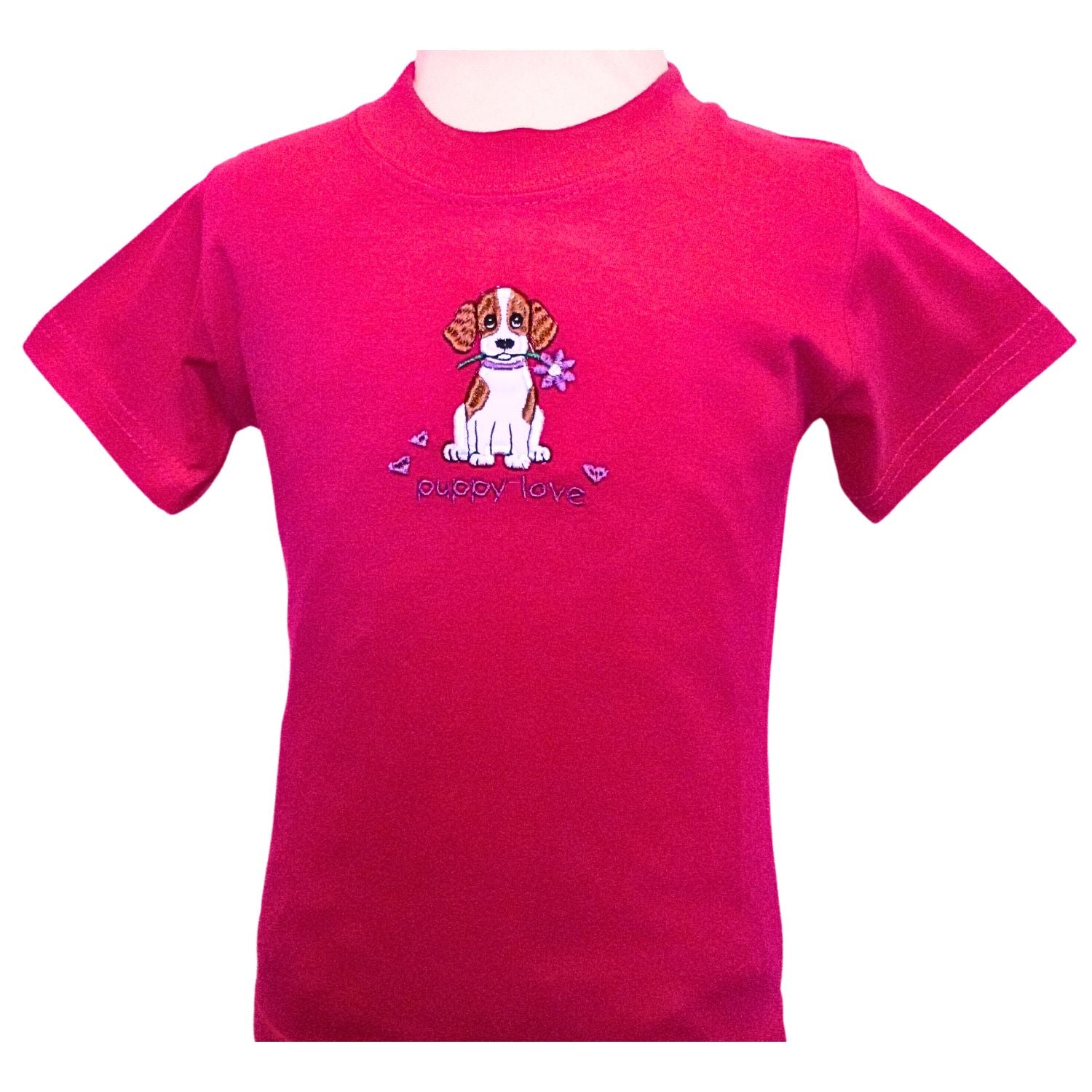 Infant Dog T Shirt Embroidered Pink With Puppy Love Design