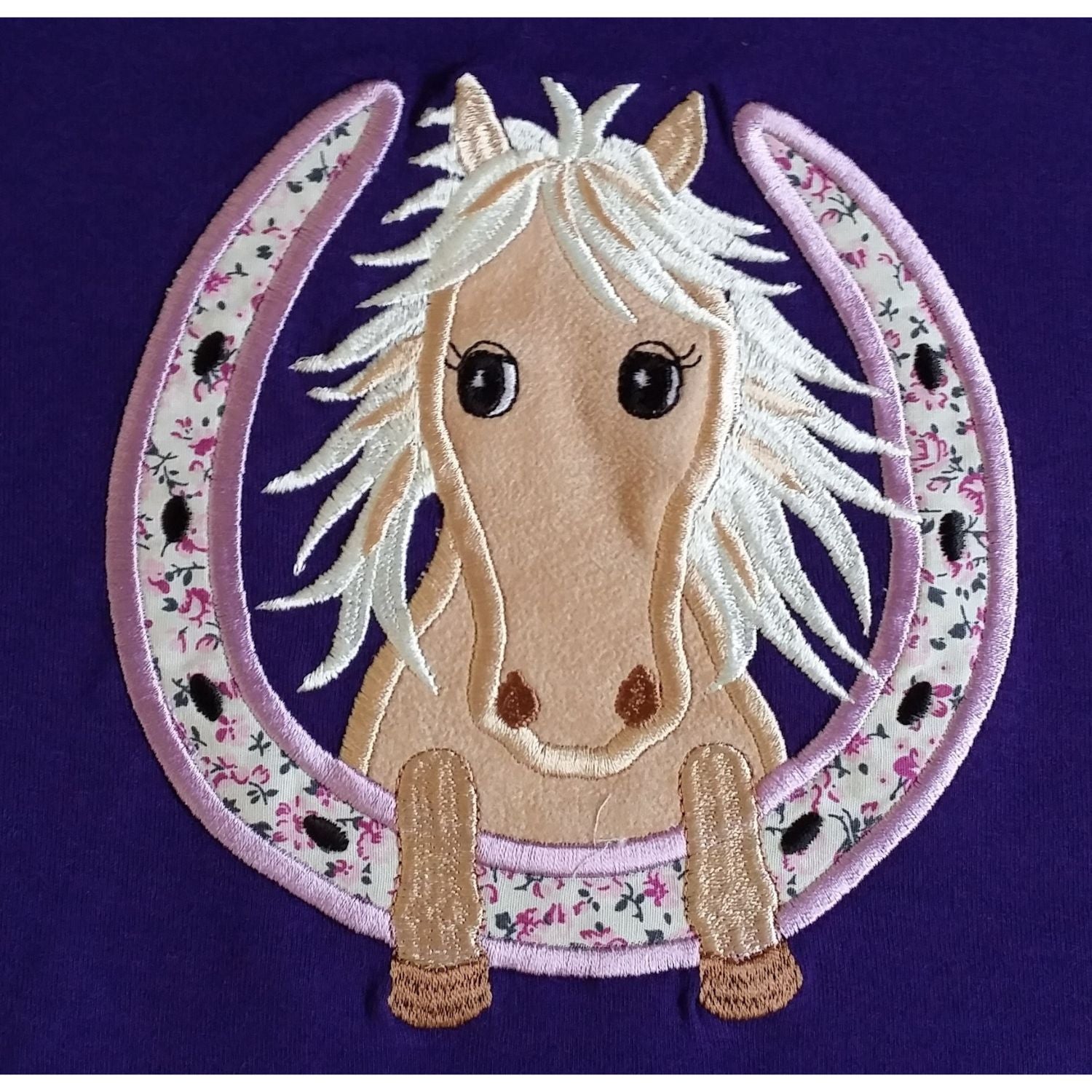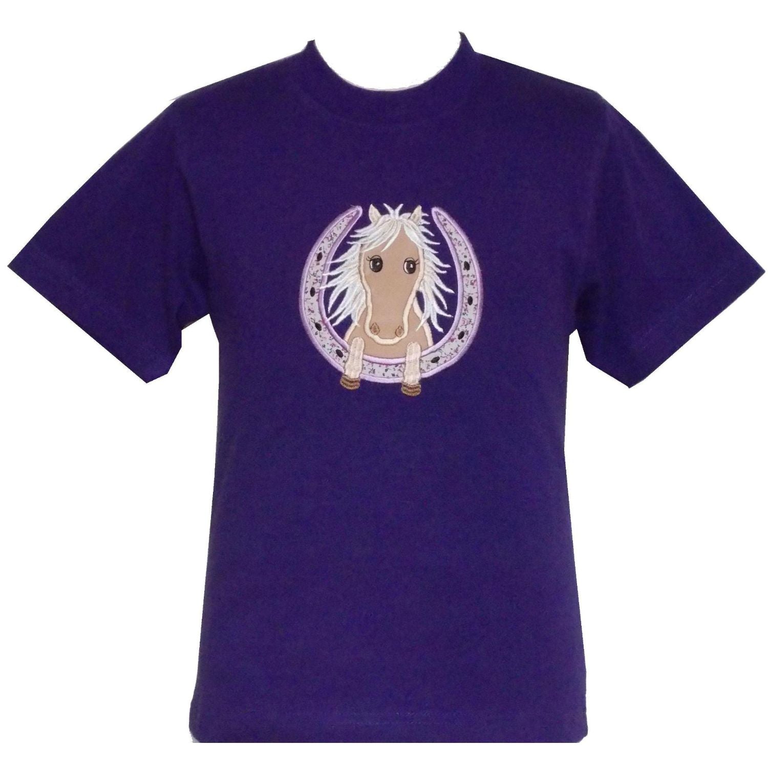 Horse Embroidered T Shirt Childrens Purple Horseshoe